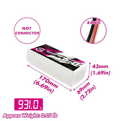CNHL G+Plus 5000mAh 22.2V 6S 70C Batería Lipo de 6 celdas 70C 5000mAh 22.2V sin conector